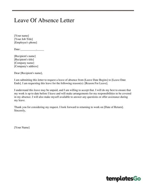 Leave Of Absence Letter Request (With Template Examples) from templatesgo.com